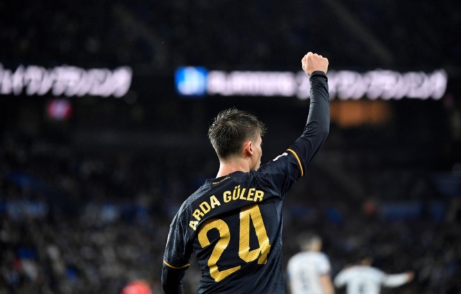 Arda Guler scored on his first La Liga start as Real Madrid closed in on the title with victory at Real Sociedad.