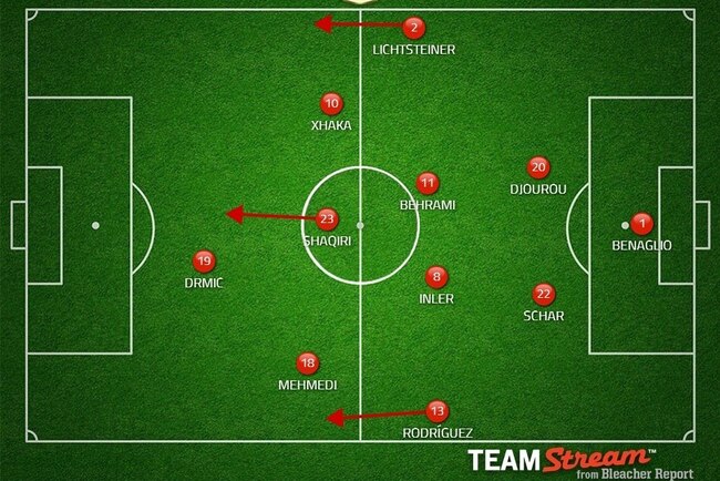 Expect Xherdan Shaqiri to start as a No. 10, offering the team drive and thrust from a central position. Valentin Stocker could come in for the now-ineffectual Granit Xhaka, stuck out on the right as a consequence of Shaqiri's move.