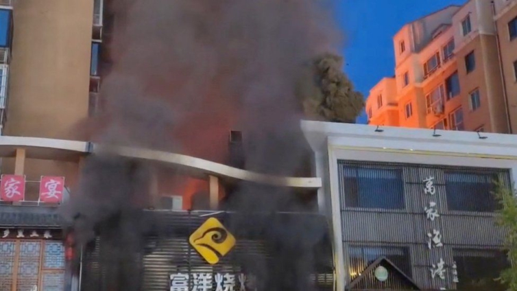 State broadcaster CCTV aired footage of more than a dozen firefighters fighting the blaze as smoke poured out of a gaping hole in the restaurant's facade. Shards of glass and other debris littered the street.