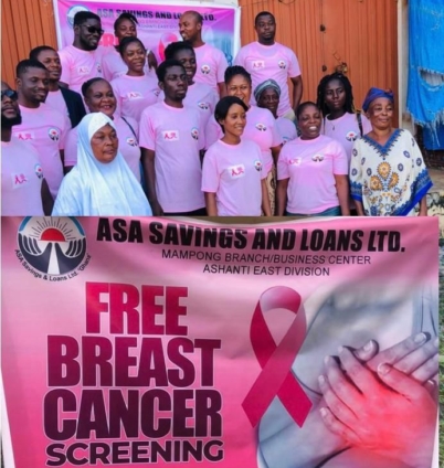 ASA Savings and Loans, a leading non-bank financial institution in collaboration with Nsuta Health Center in Nsuta in the Eastern Region, has screened traders at Asante Mampong to mark this year’s breast cancer awareness month.