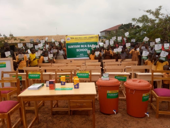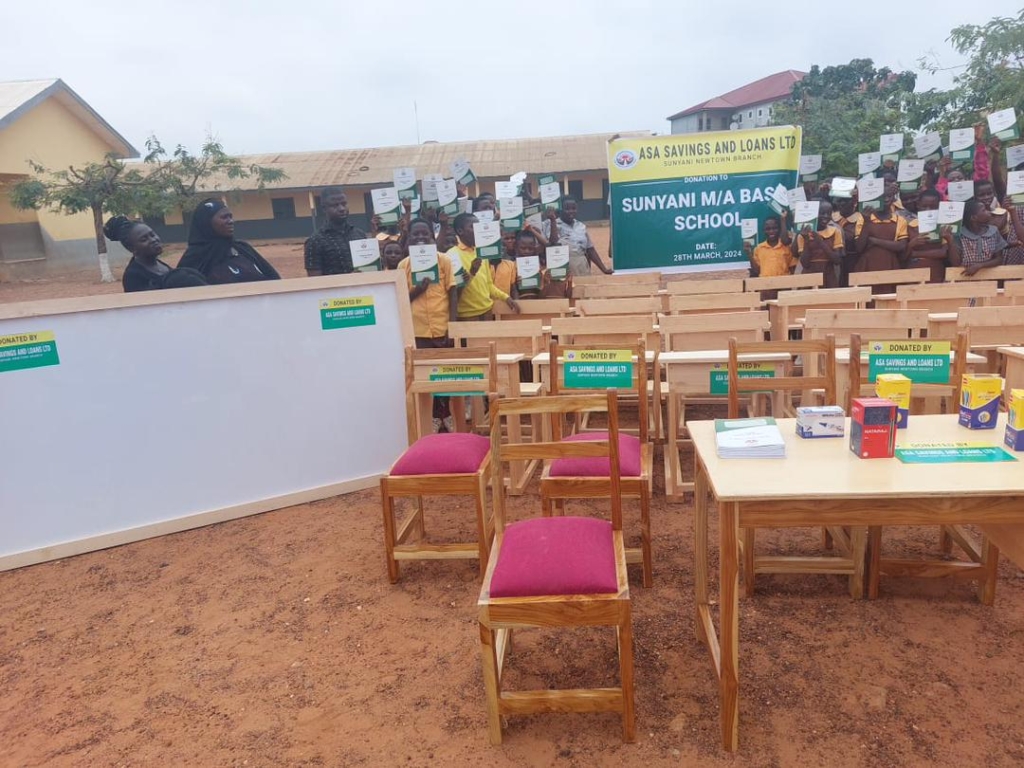 In its quest to improve and support government efforts to ensure quality delivery of service to students in public schools, ASA Savings & Loans has presented teaching and learning resources to the Sunyani M/A Basic School in the Sunyani East Municipality of the Bono Region.
