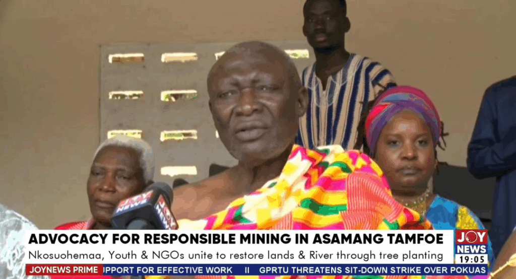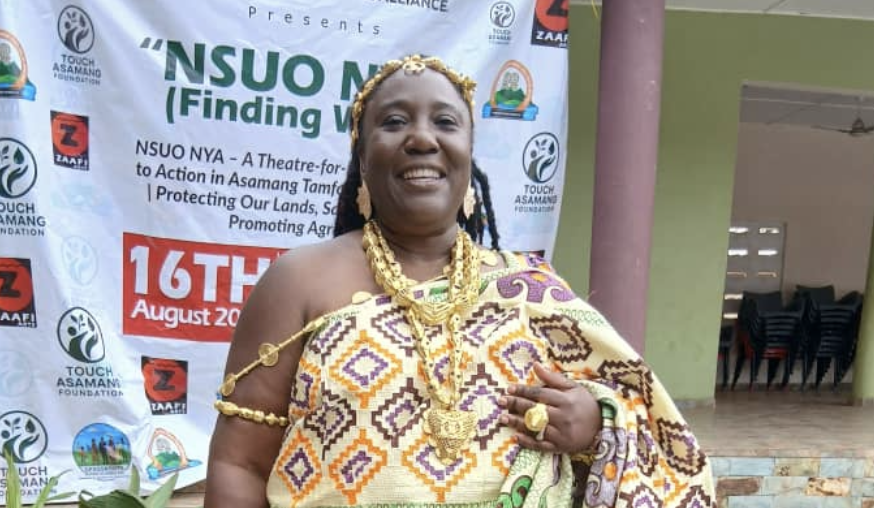 The newly installed Nkosuo Hemaa of Asamang Tamfoe, Nana Ama Bempomaa I, has launched a tree-planting initiative to reclaim lands destroyed by illegal mining.
