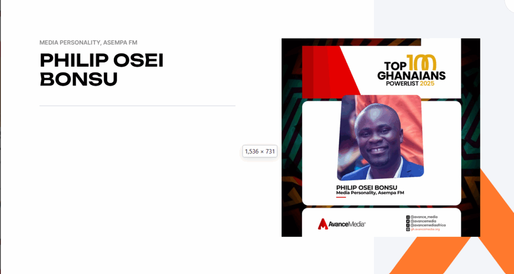 Philip Osei Bonsu’s recognition places him among a distinguished group of national figures shaping narratives and influencing public life, reaffirming his standing as one of Ghana’s most impactful voices in media and public affairs.