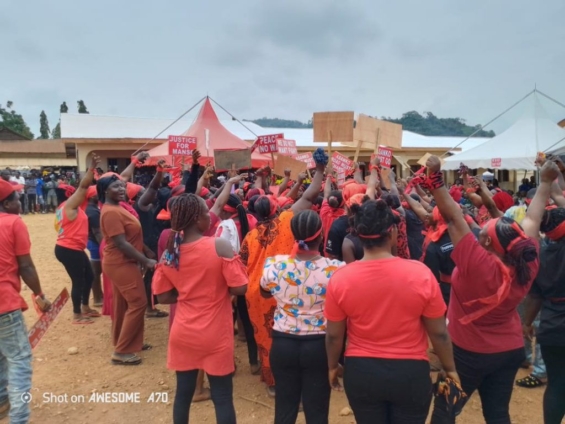 The aggrieved youth clad in red wielded placards with some written on them, “Asanko Soldiers must go!” as they vent their displeasure at the killings of the community folks.