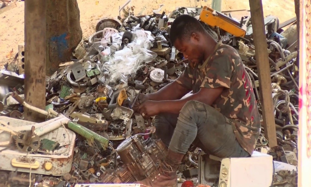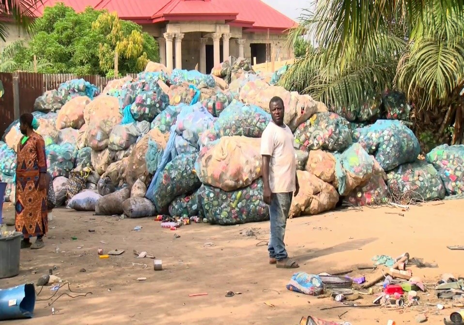 Kwame Lucky agreed to speak on camera. He has pitched camp close to the landfill site. After receiving garbage from the dump site, he airs it for 3 days to reduce the odor before sorting out scraps.