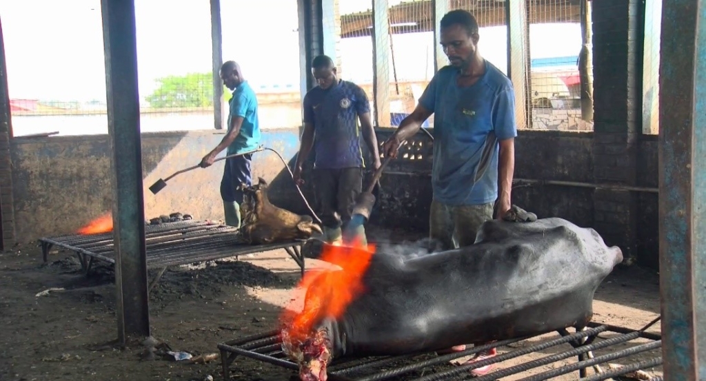 “When we were using tyres for the singeing, we were always looking dirty and sick,” says one of the butchers here. “If you saw us, we looked very black. We were getting sick very often.”