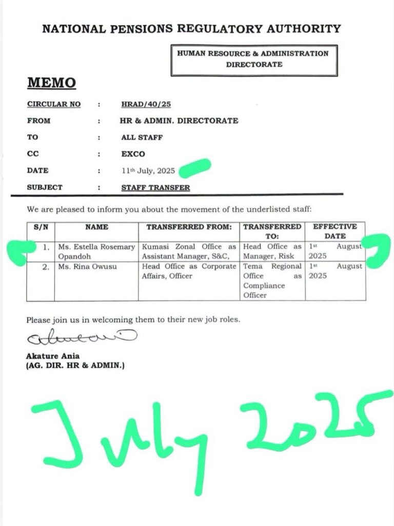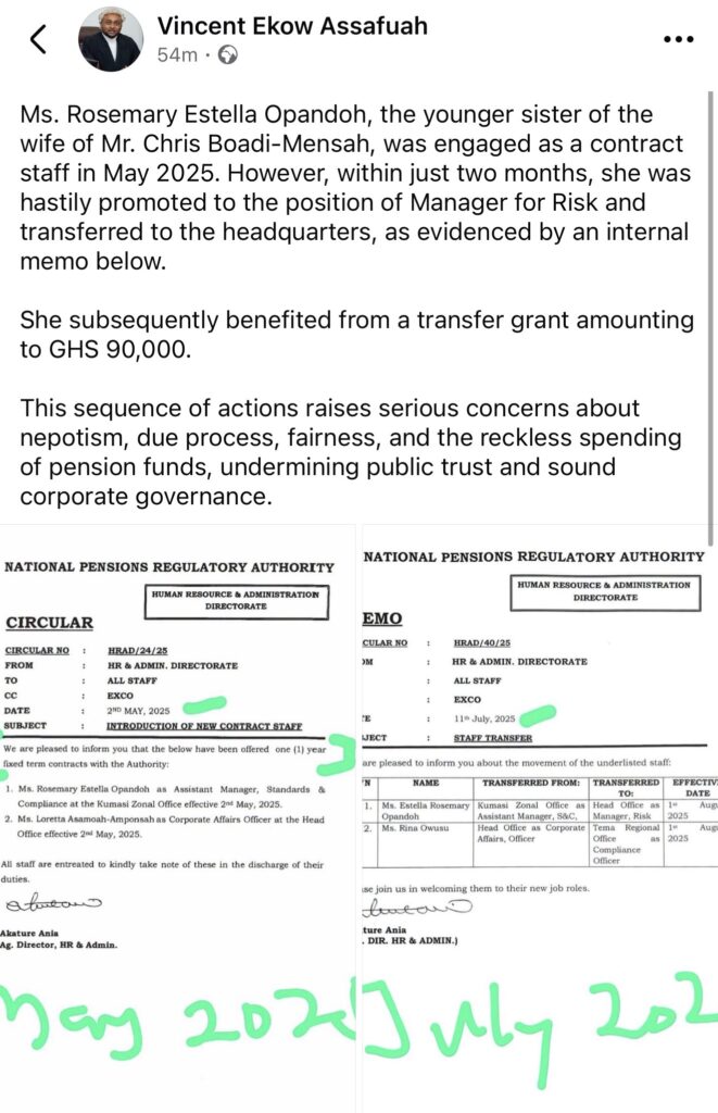 According to Mr Assafuah, the rapid elevation of Ms Opandoh to Manager for Risk and her subsequent transfer to the Authority’s headquarters raise serious questions about adherence to due process.