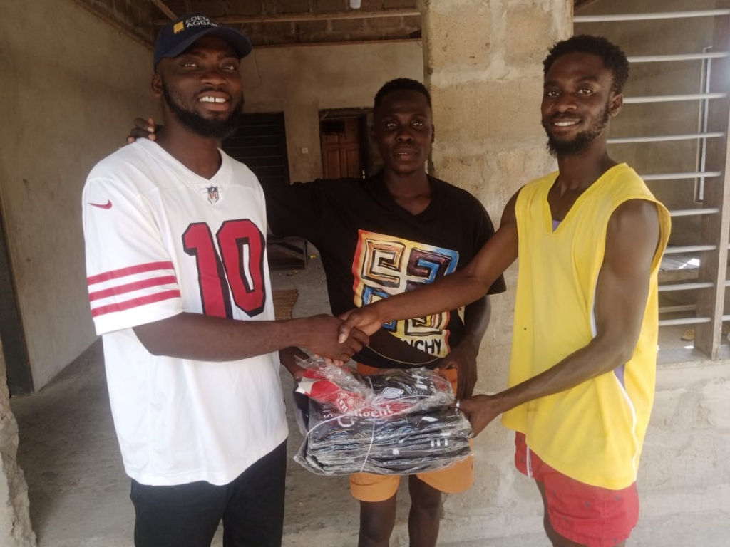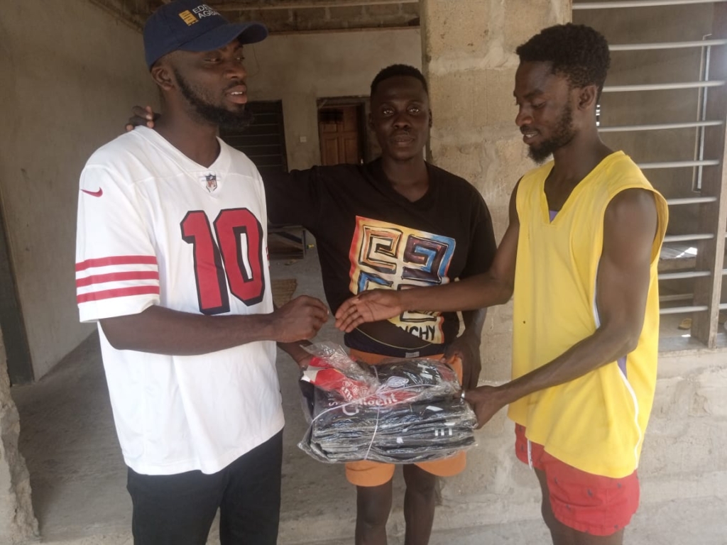 An aspirant for the position of Assembly Member in the Alakple Electoral Area, Eyram Ameshi, has fulfilled his promise to Golden Rangers FC by donating football jerseys to the team.