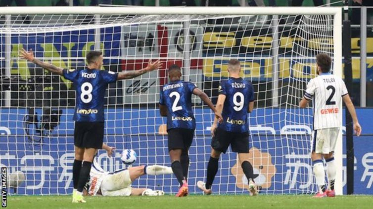 Atalanta scored what they thought was a late winner as Samir Handanovic spilled Roberto Piccoli's shot. But a long video assistant referee review found the ball had gone out of play in the build-up.