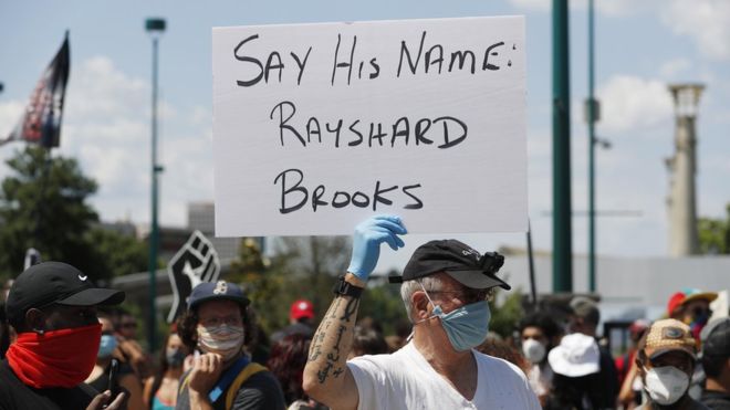People in Atlanta had already been protesting following the death of George Floyd. He died on 25 May after a Minneapolis police officer kneeled on his neck for over eight minutes. The officer has been sacked and charged with second-degree murder.