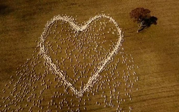 So he turned instead to his own sheep and pasture to show his love, laying out grain in the shape of a heart.