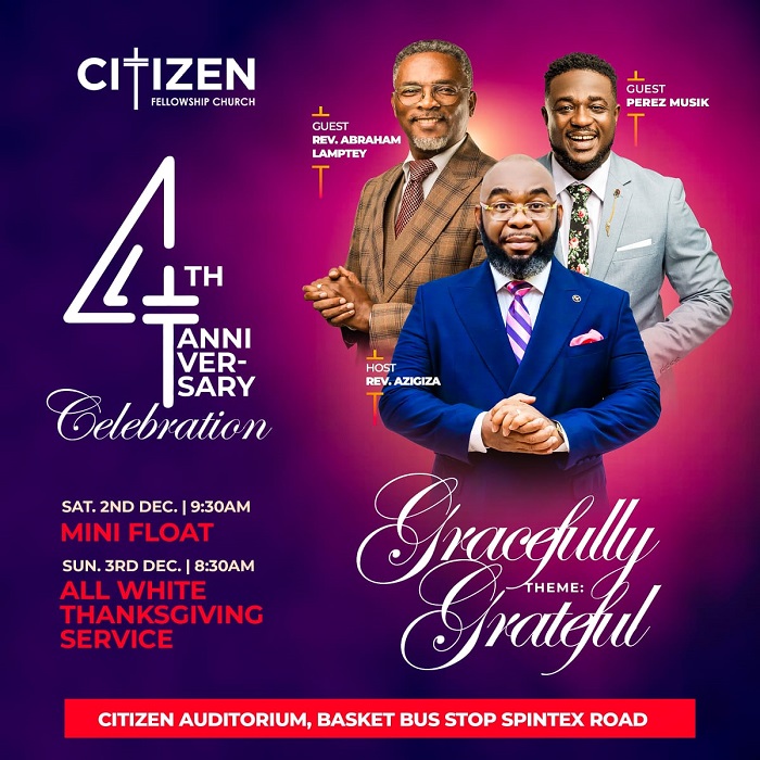 He also invited all to join the celebration at the Citizen Auditorium, Basket Bus Stop, Spintex Road, as members of the Citizen Fellowship Church revel in the grace of God that has brought them to this significant milestone.