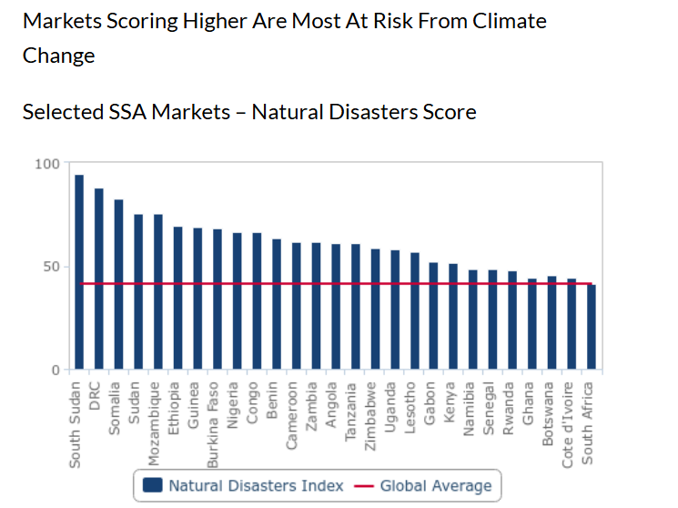 These risks, the UK-based firm said, are particularly pronounced in SSA due to the region's heavy reliance on agriculture and natural resources and low levels of resilience to climate change.