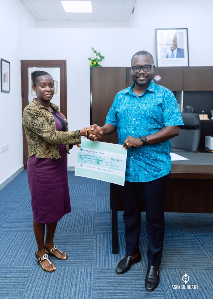 She expressed her gratitude to Francis Asenso-Boakye for the kind gesture.