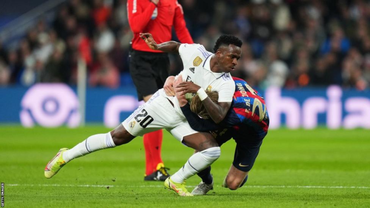 The opening moment of noteworthy action was Vinicius Jr throwing Frenkie de Jong to the turf via a headlock, but it was the visitors who took the lead - and in farcical circumstances.