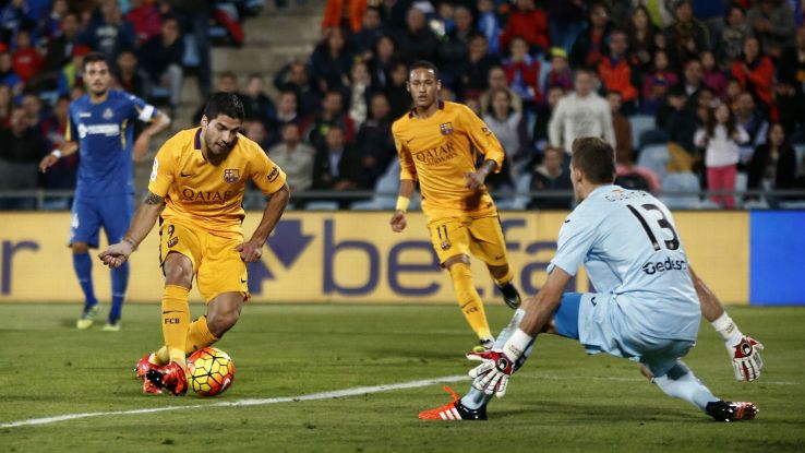 Suarez fired the Catalans in front eight minutes before the break, collecting a fine Sergio Roberto back-heeled pass before slotting into onrushing Getafe goalkeeper Vicente Guaita's near post.