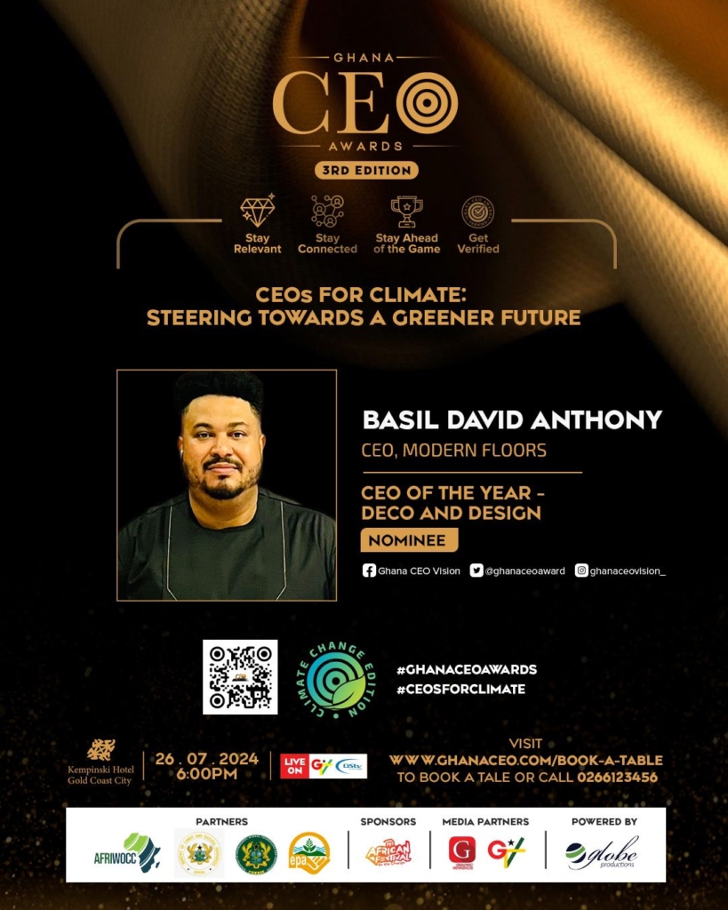 In a momentous stride towards recognizing exemplary leadership and innovation in the corporate realm, Basil David Anthony, the CEO of Modern Floors, has been nominated for the prestigious Ghana CEO Awards 2024.