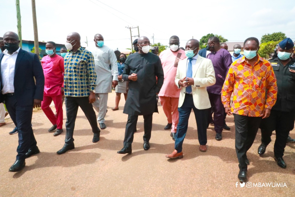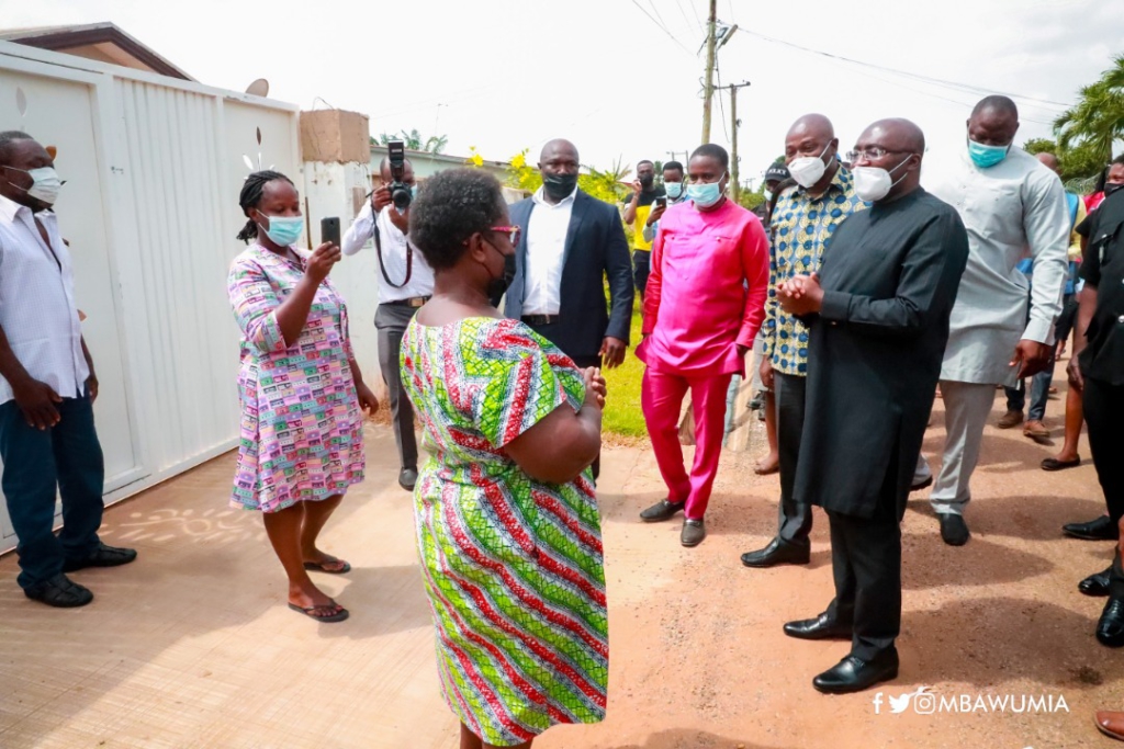 Accompanied by the Minister for Local Government, Hon Dan Kwaku Botwe, the Managing Director of the State Housing Company, Kwabena Ampofo Appiah, and officials of LUSPA led by Mr Owusu Sekyere, the Vice President interacted with residents who had already received their unique addresses, and witnessed the fixing of plates onto properties in the Adenta Municipality on Monday, 12 April 2021.