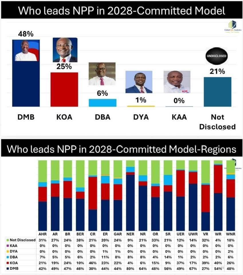 According to Global InfoAnalytics, its latest committed voters model survey on the election showed Dr. Bawumia is in pole position, having inched closer to the victory mark, even with a significant chunk of voters still in the undecided bracket.