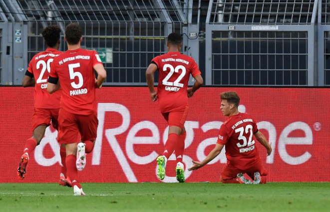 Joshua Kimmich's wonderful chip from 20 yards gave Bayern the lead just before half-time after both sides had efforts cleared off the line.