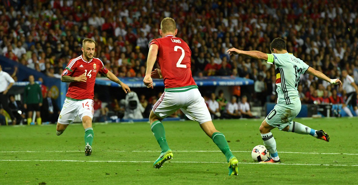 Toby Alderweireld gave Belgium the lead with 10 minutes on the clock when he nodded Kevin De Bruyne’s set-piece past Gabor Kiraly.