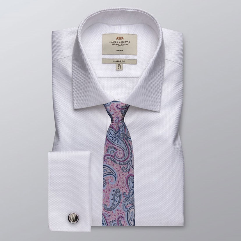Famed shirtmaker Hawes & Curtis is a mainstay for quality shirts. This one in particular comes with an elaborate weave and a unique diagonal line of raised fabric. Also, it's cotton twill construction means it is thicker, and with a smoother, silkier finish than other materials, refined and luxurious springs to mind.