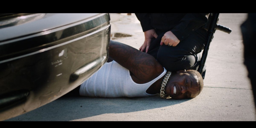 DaBaby’s set opened in a close-up shot of him being held face-down on a street. While delivering some bars, the camera pans into a wide shot to show the North Carolina rapper handcuffed lying on the ground while an officer pins him down with a knee pressed to his neck, a direct reference to the tragic killing of George Floyd.