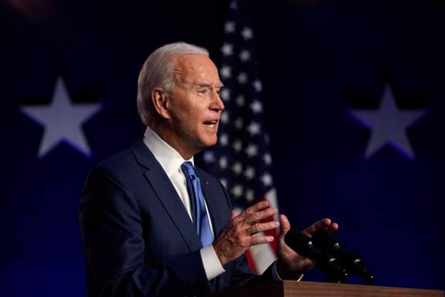 The tallies in Arizona, Georgia, Nevada and Pennsylvania -- though networks have not projected a winner -- tell "a clear and convincing story: We're going to win this race," the former vice president said in a speech late Friday night in Wilmington, Delaware.