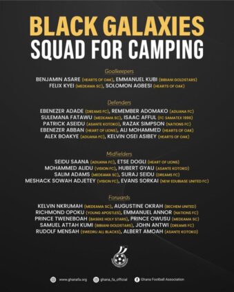 Black Galaxies name 32-man squad for Accra camping