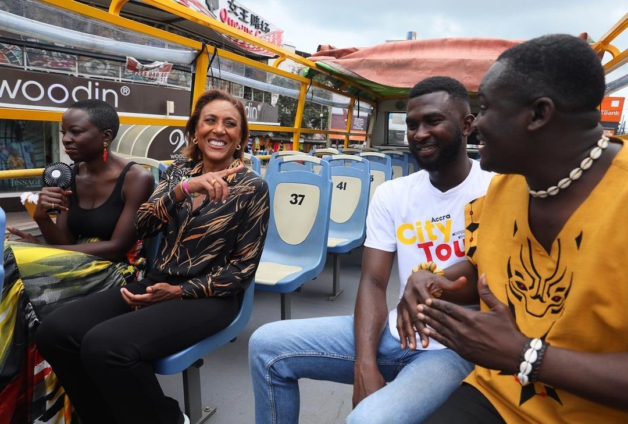 Robin Roberts and Danai Gurira were seen in a tour bus exploring Ghana’s capital city.