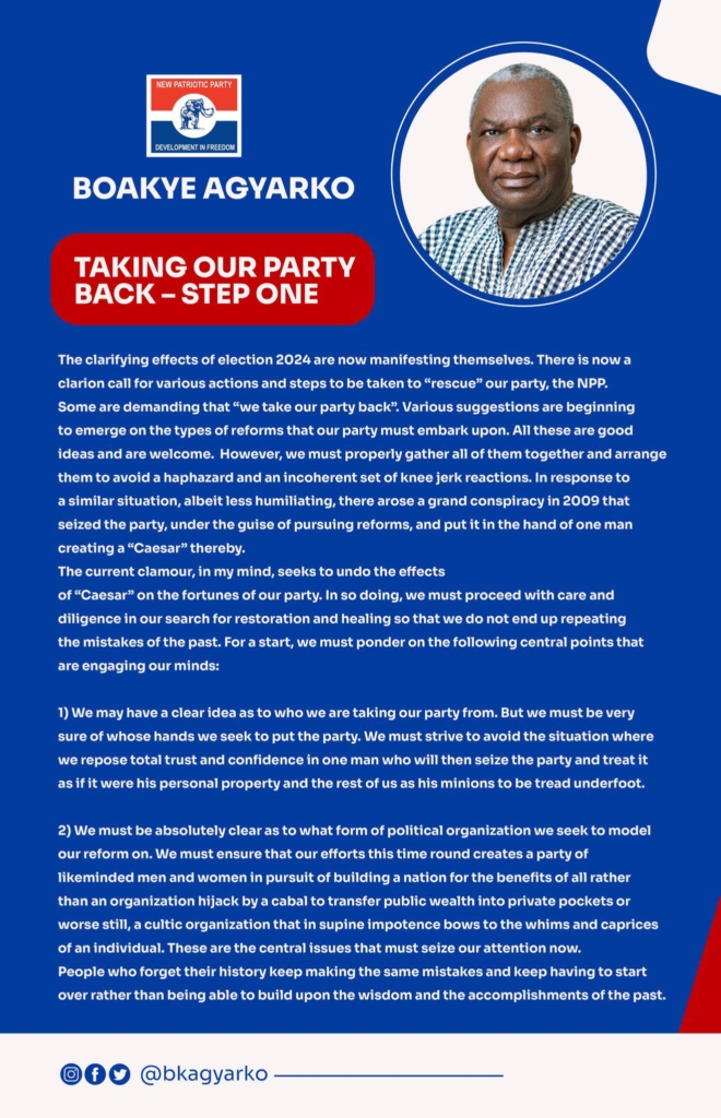 In a statement, Mr Agyarko warned against the over-centralisation of power within the party, noting that similar reforms in 2009 led to one individual dominating the organisation.
