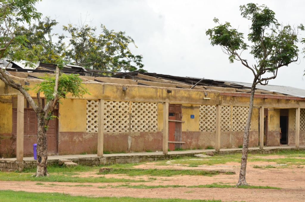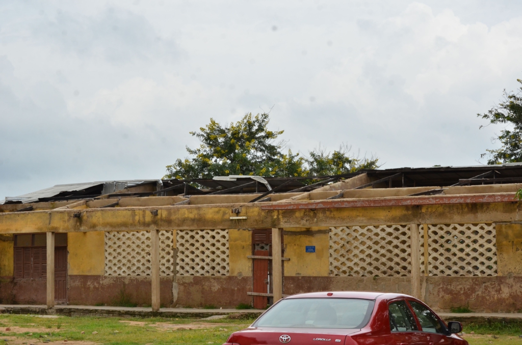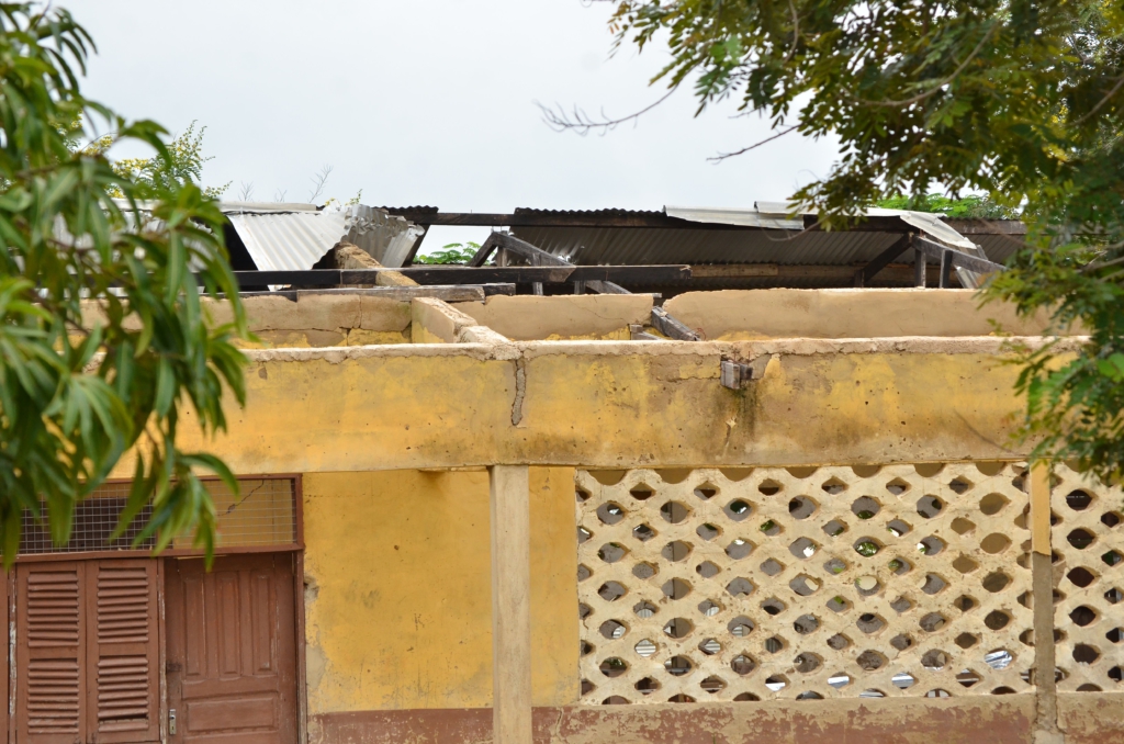 The walls of the classrooms have also developed cracks, whiles the headmistress and teachers of the school sit under a mango tree to do administrative work because the roof of their office was also blown off by the storm.