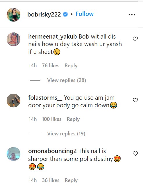 “I love my nails so much, this is luxury, so beautiful. Only Bobrisky can rock this,” Bobrisky said in the video posted on Instagram.