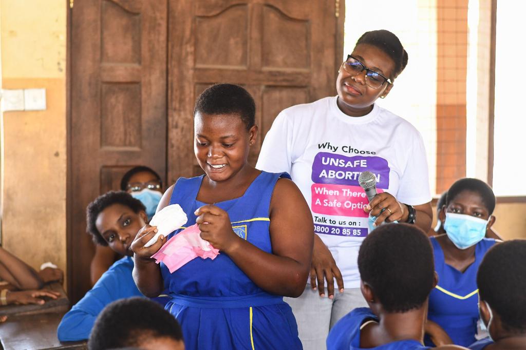The session started with a health talk on menstrual hygiene management and sexual reproductive health delivered by representatives from Marie Stopes Ghana.