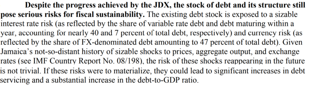 As the IMF, which had provided resources to assist Jamaica navigate these difficult times, noted, Jamaica’s shallow restructuring strategy was not fiscally sustainable.