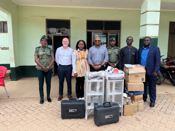 This donation, valued at £9,000, includes: Boxes of handcuffs, Handcuff holders, Gloves, Utility belts, Mag lite torches, Stanley torches, Pocket balances, Ladders, Container probes, a large Defender weighing scale, Peugeot Gerber cutter, Peugeot drill machine, Bosch inspection cameras and Digital cameras.