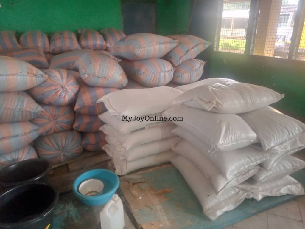 JoyNews' sources at the school indicated that 63 bags of rice, 70 bags of maize and 55 mini bags of beans were received. The rest included 60 cartons of oil and 41 boxes of sardines.
