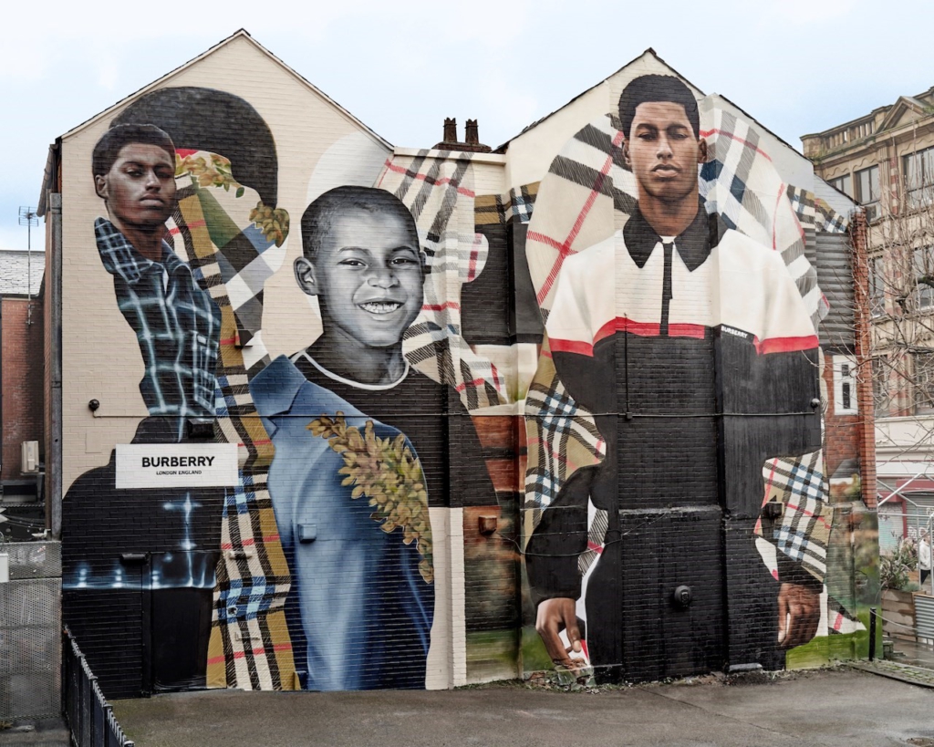 Now, in a bid to celebrate the footballer’s inspirational work throughout the year – and the fact he pretty much saved 2020 – the British luxury brand has teamed up with collage artist Jazz Grant to create a mural in his honour.