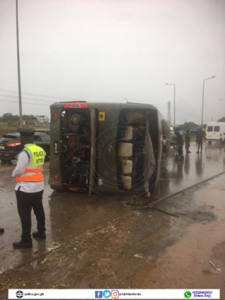 An Accra bound military bus carrying some military personnel has turned on its side on the Accra-Tema motorway.