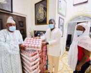 M.Y Caesar presents products to Jubilee House in fight against Covid-19