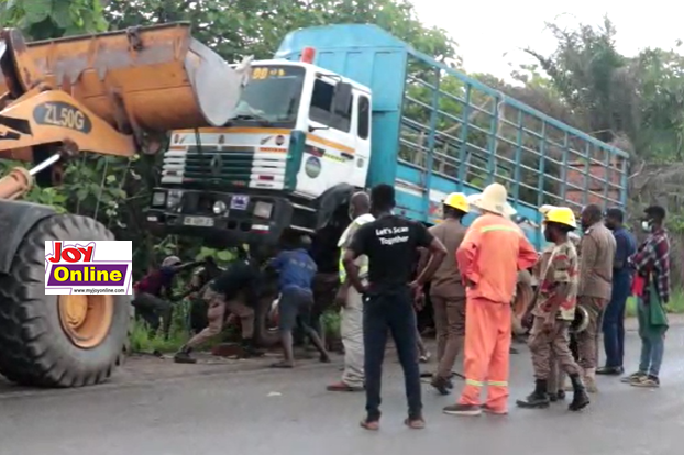 A cargo truck loaded with food items travelling from Bimbila to Accra was involved in an accident between Dodo-Pepesu and Dapaa junction in the Kadjebi District in the Oti Region.
