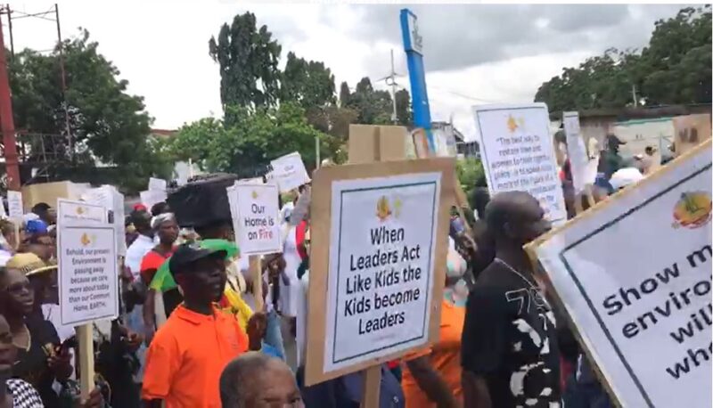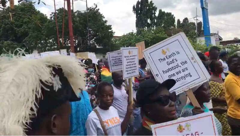The protest saw demonstrators, including members of the “Crusaders Against Galamsey” group, holding placards with messages condemning illegal mining activities.