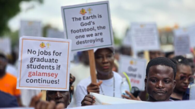 The protest walk reflects growing public dissatisfaction with the government’s efforts to stop illegal mining and highlights the urgent need for more decisive action to protect the country’s water bodies, forests, and ecosystems.