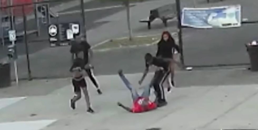 The video made public by the New York Police Department showed 2 males and 3 females attacking the driver on a pavement.