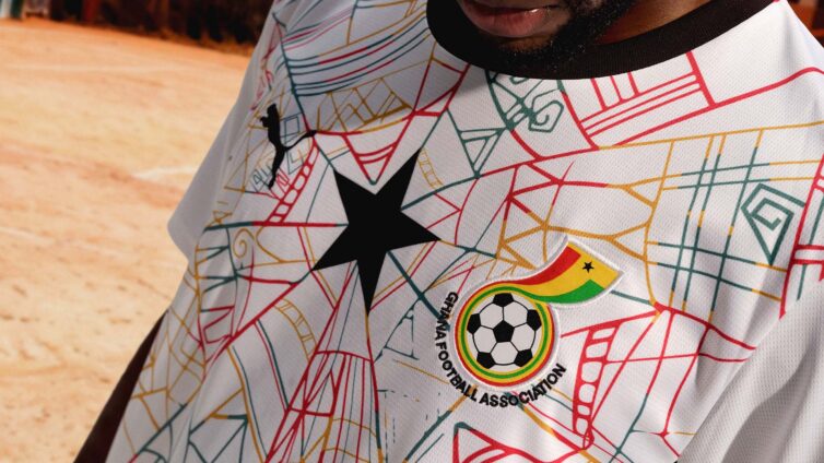 The home kit (white jersey), the company says, draws inspiration from Ghana’s national identity, energy, and rhythm.