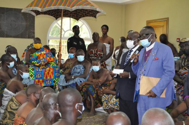 Presenting himself to the Asantehene, Archbishop Prof. Dr. Anane Frempong thanked him for his advice when he started the non-surgical treatment of piles (Kooko) at the Asafo-Agyei hospital.
