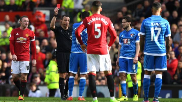 The mood turned on an incident shortly before half-time when Bournemouth's Andrew Surman was dismissed after a clash involving Zlatan Ibrahimovic and Tyrone Mings. It was, for once, not the Swede's afternoon and that was confirmed when he missed a second-half penalty that would have lifted United to fourth in the table.