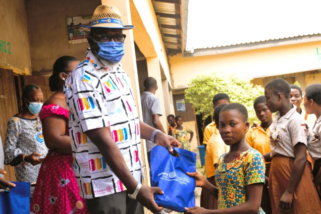 The onset of menstruation means a new phase – and new vulnerabilities – in the lives of adolescents. Yet, many adolescent girls face stigma, harassment, and social exclusion during menstruation. As part of the donation, the students were educated on menstrual hygiene management by professionals from the Ghana Health Service.