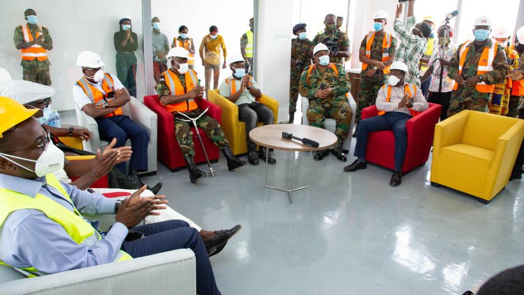The CDS was accompanied on his inspection tour by the Director of Engineering Services at the Ghana Armed Forces, Colonel E. A. Shooter. They were taken round the facility by a some of the trustees of the Ghana Covid-19 Sector Fund, including Edward Effah, Chairman of Fidelity Bank and Managing Trustee, Senyo Hosi.