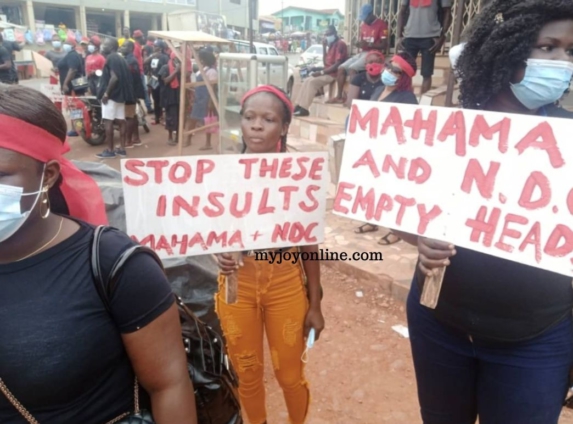 A group calling itself, Concern Citizens of Okyeman, has taken to the streets to demonstrate against former President John Mahama and National Democratic Congress (NDC) for allegedly describing them as ‘Akyem Sakawa Mafias’.